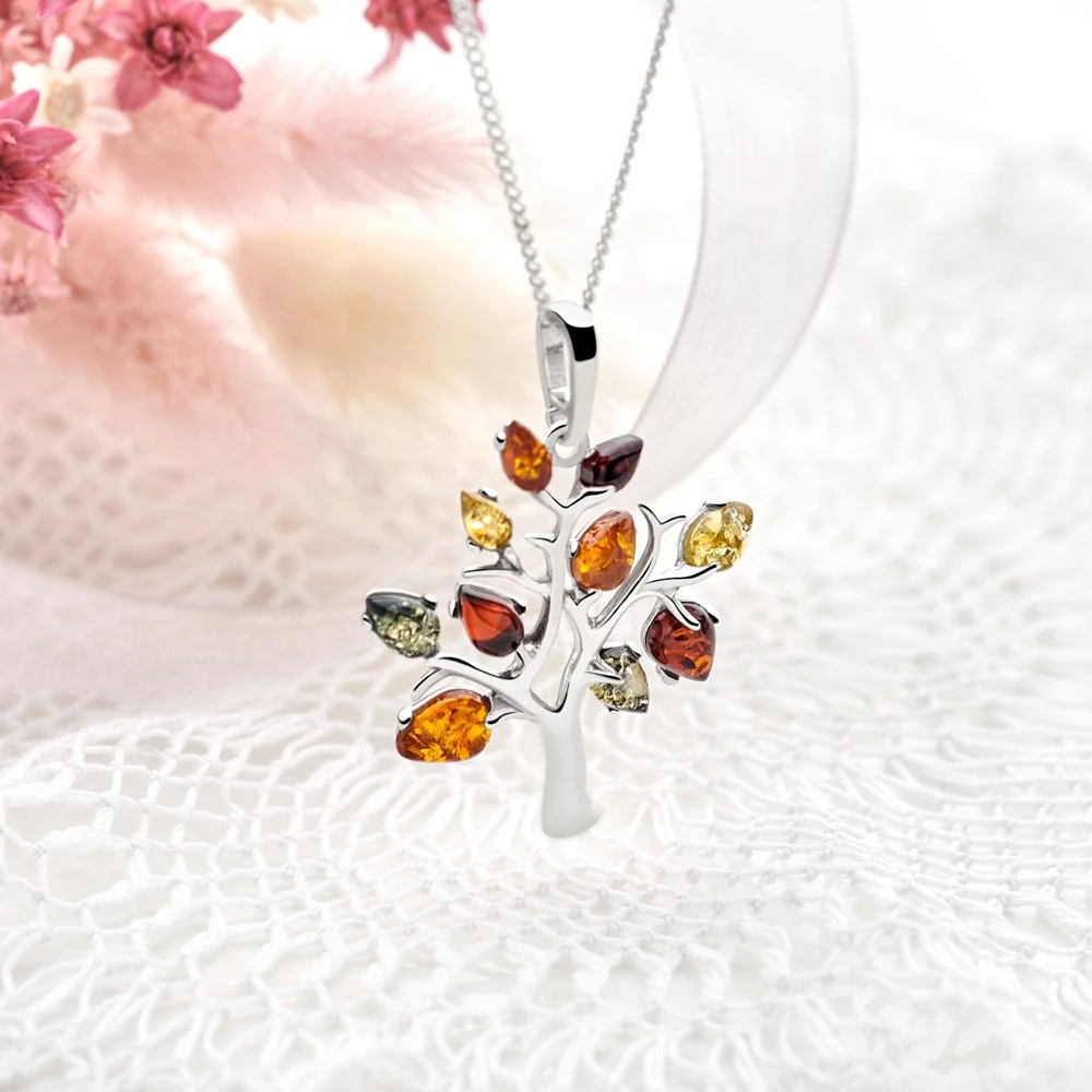 Rooted in the ground but reaching for the stars; this beautiful pendant features a stunning tree filled with amber tones of forest green, lemon yellow and deep orange. Width:38x28mm (inc loop). Includes 40cm curb chain. Longer chains available.