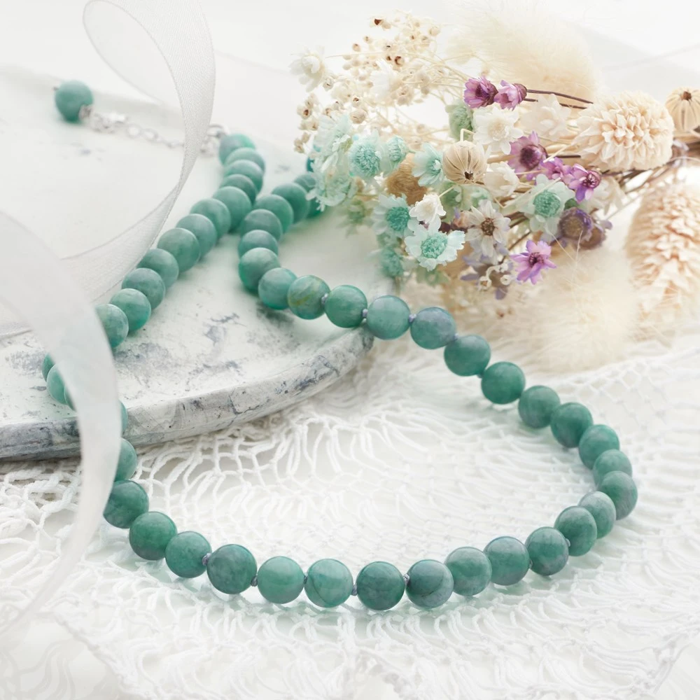 Beautifully smooth beads of amazonite showcase milky blue/aqua hues. Amazonite is said to be a soothing stone, eliminting worry, fear and negative energies. Finished with a matching bead and silver star charm.