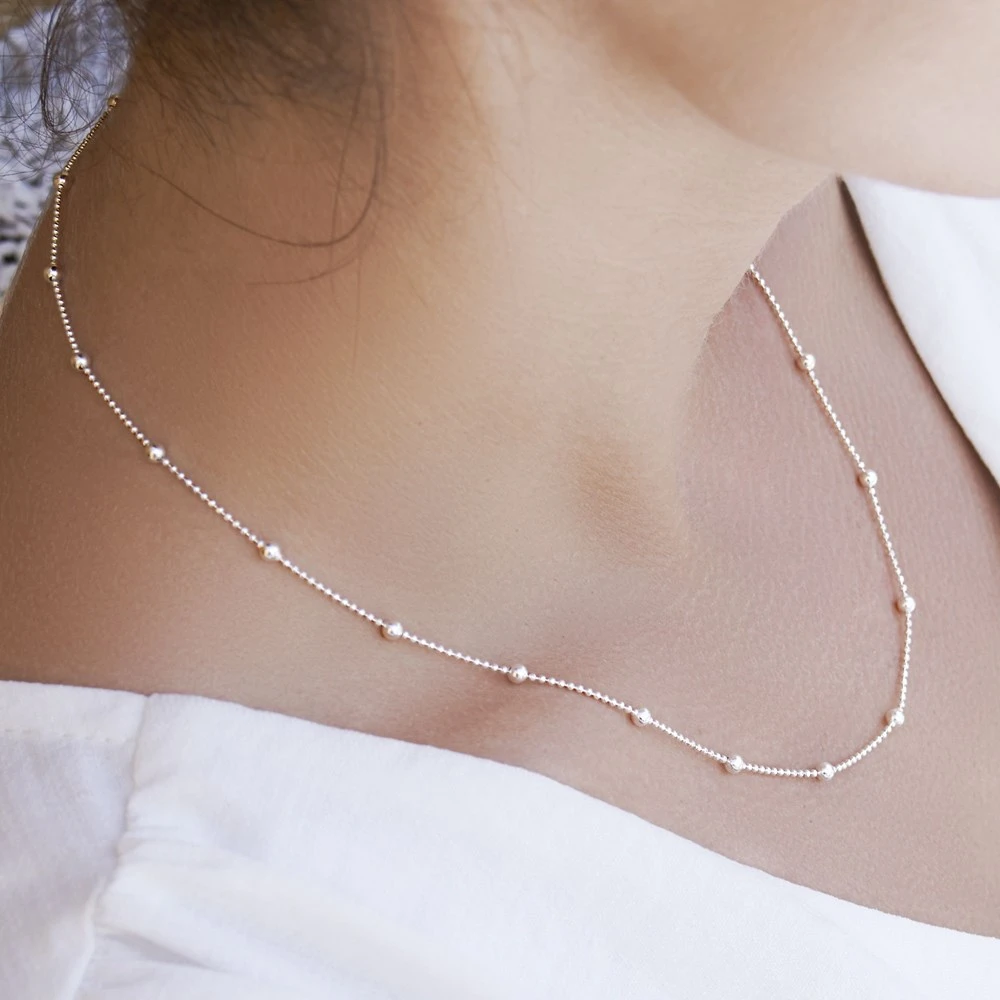 Classic beads sit pretty on this shining sterling silver chain to create this timeless necklace. Wear alone for sophisticated glamour or stack with other chains to create a look completely unique to you. Width: 3mm. Chain length: 45cm.