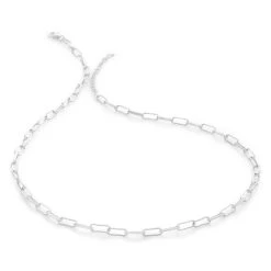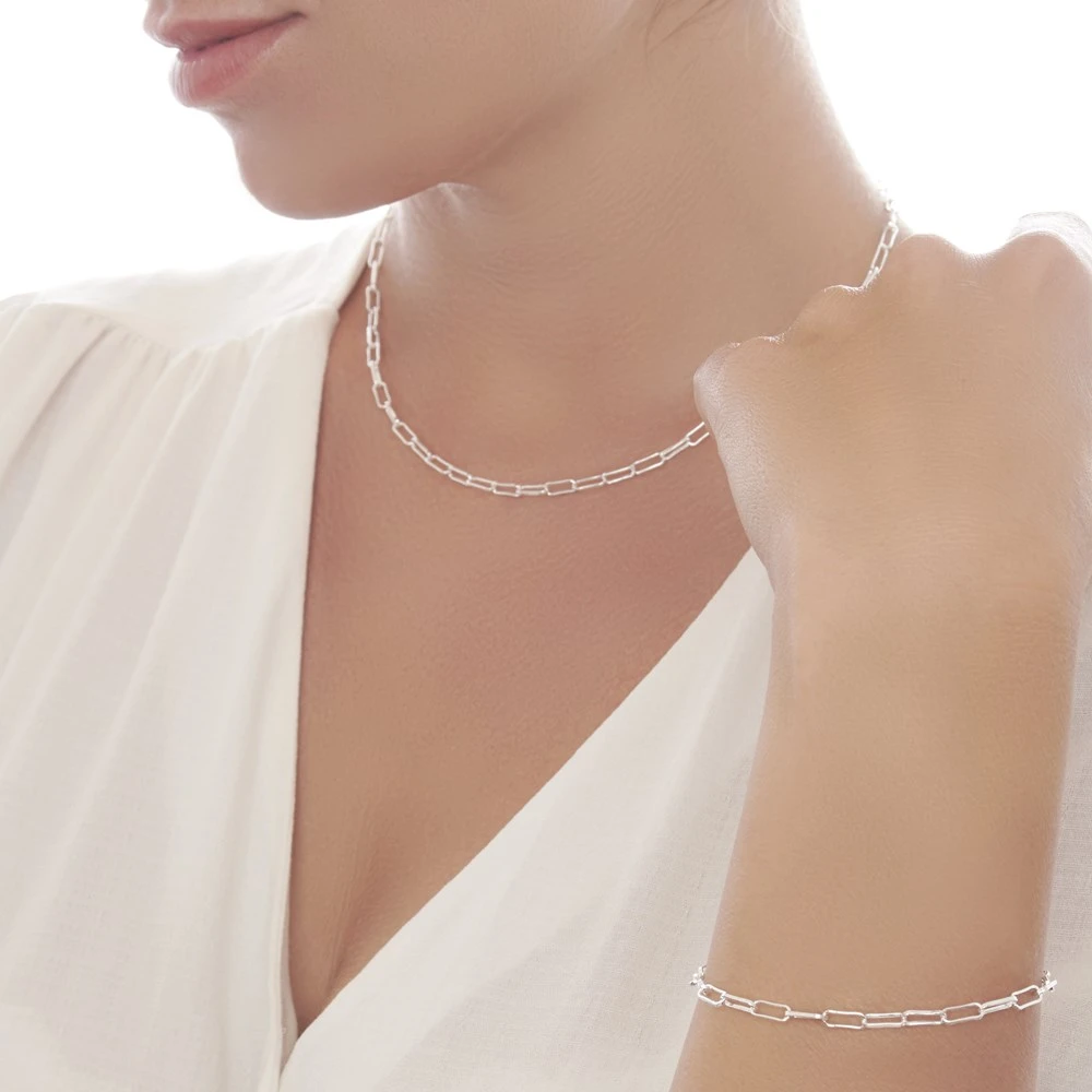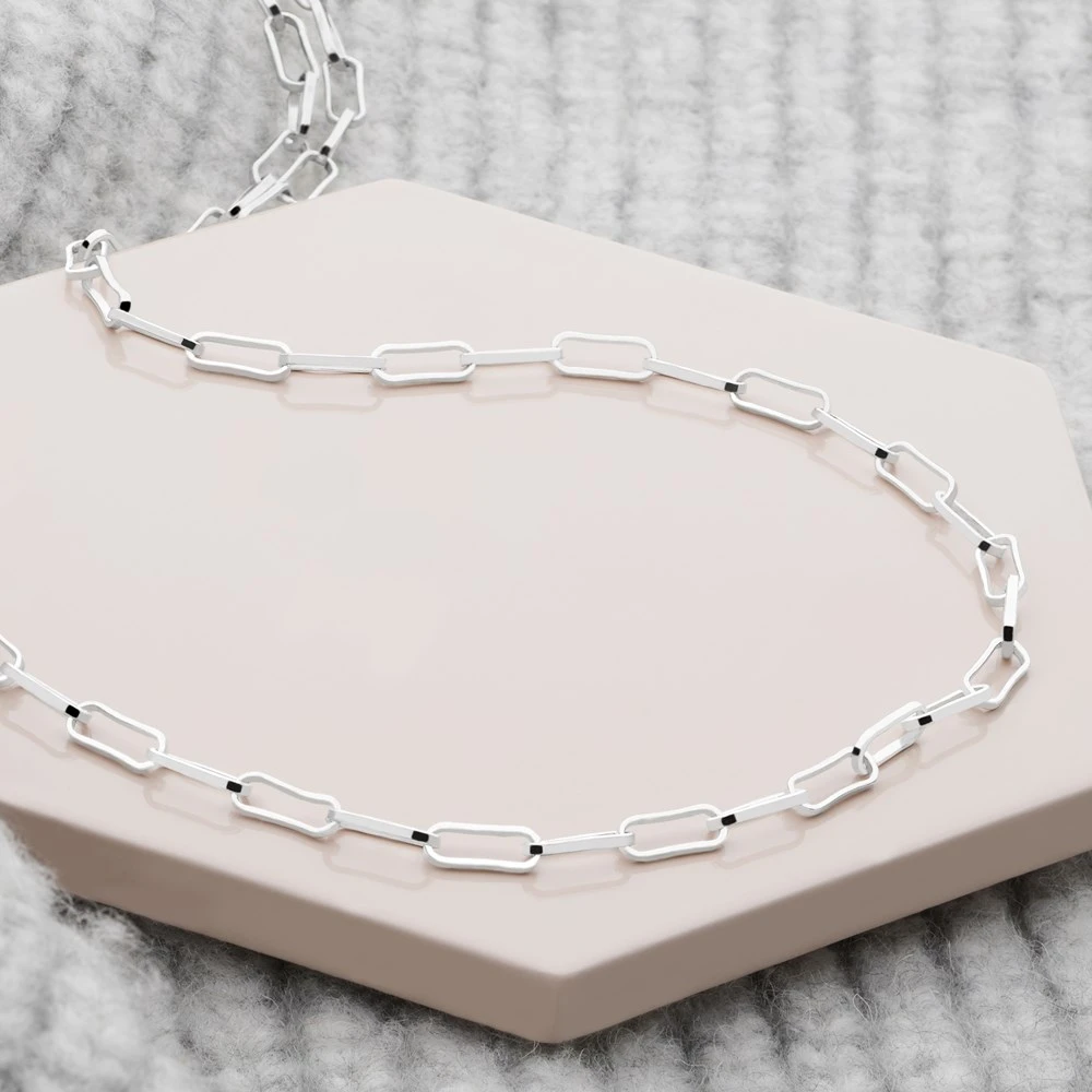 Delicate, elongated links are linked together to create a stream of flowing sterling silver. A versatile piece that looks great when worn alone or when layered up with other chains in your collection.