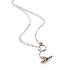 This extra long silver T-bar chain can be worn as a long lariat chain or wrapped around twice for a layered up look. Finished with rose gold accents alongside a silver belcher chain this classic icon takes us back to timeless elegance.