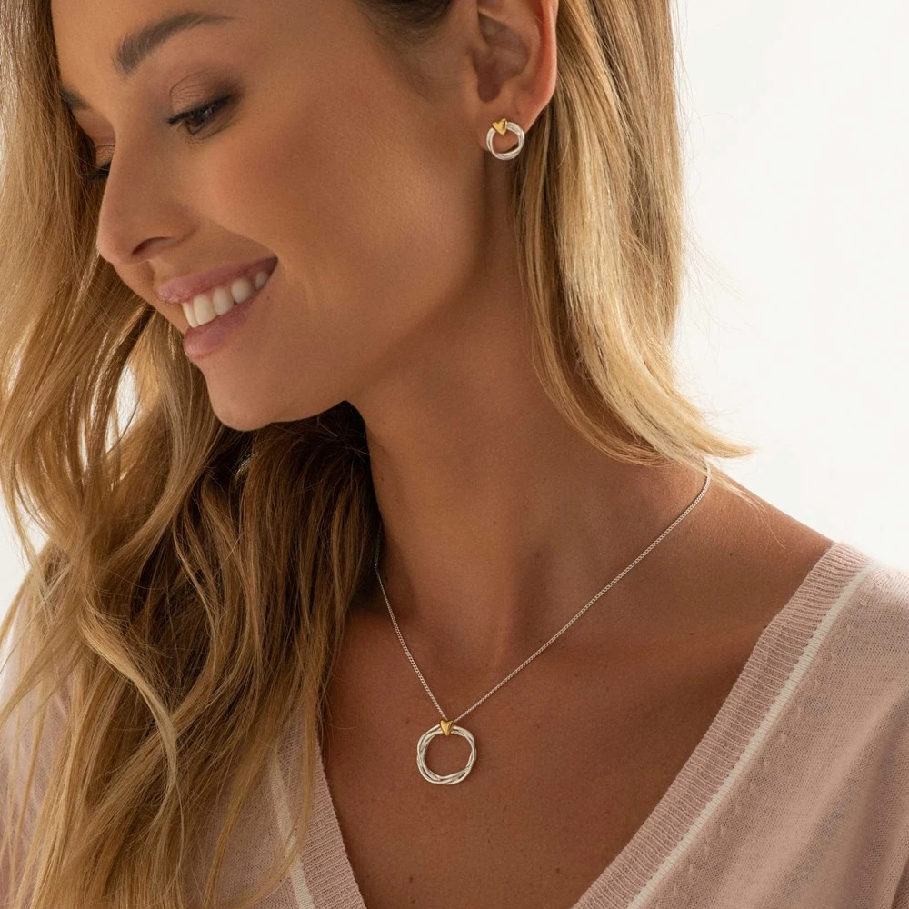 A trio of handcrafted silver loops finished with the most dainty little love heart to combine creative energy with sweet romance. For pared down, weekend style, who could wish for more? Diameter: 22mm. Includes: 40cm curb chain. Longer chains available.