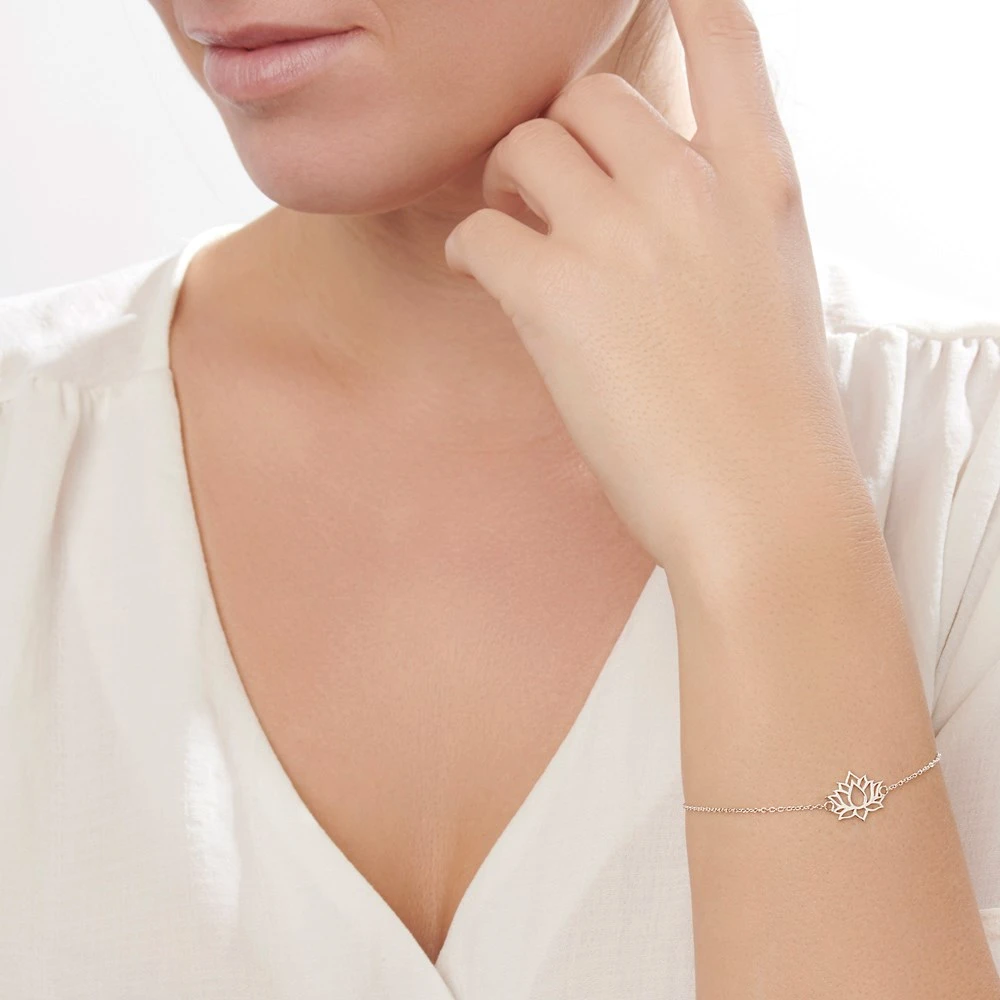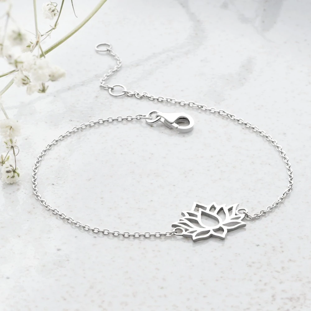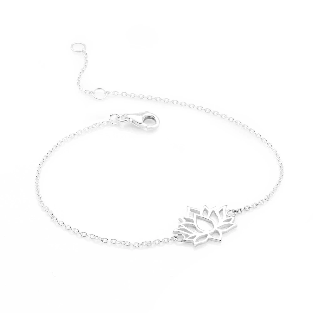 Inspired by the lotus flower that grows and beautifully blooms in muddy water, this delicate flower crafted in sterling silver symbolises spiritual growth and the ability to rise above obstacles. Size: 16x12mm. Chain length: 16-18 (adjustable).