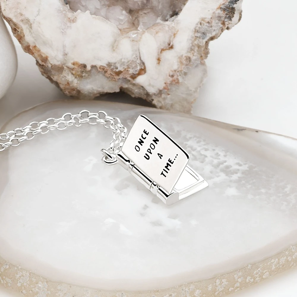 Dreams can come true with this stunning fairytale pendant. This dreamy handcrafted book is engraved with ‘Once Upon a Time’ and ‘Happily Ever After’ and opens for you to add a piece of your own fairytale. Width: 20x11mm (inc loop). Includes 40.5cm belcher chain with 5cm extender.
