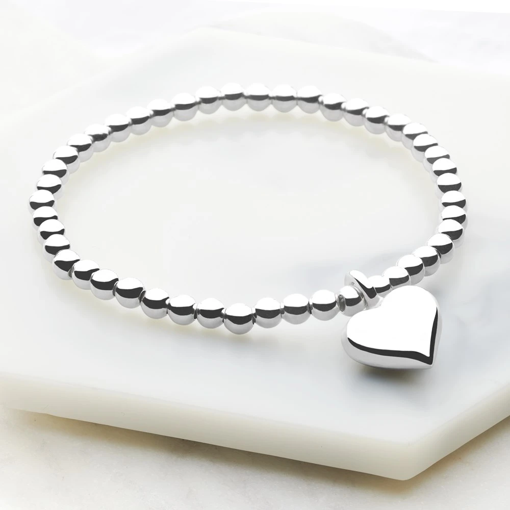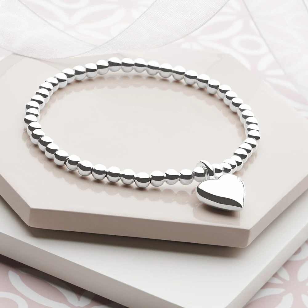 From the sweet silver heart charm to the dazzling silver beads, this bracelet is brilliantly adorable. Divine with a diaphanous dress in sherbet shades. Heart size: 18x13mm (inc loop).