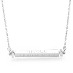 This sterling silver bar pendant in a polished silver finish makes a wonderful gift for those closest to your heart. A classic piece which can be personalised with children’s names, newlyweds and the date or time of their special day or anything personal to you. We can only engrave in the font shown (in capital letters) with all numbers. This necklace can be personalised with four personalisations of your choice. Pick the amount of sides you would like personalised, please note that there is an additional £2.00 charge for each side you would like engraved.