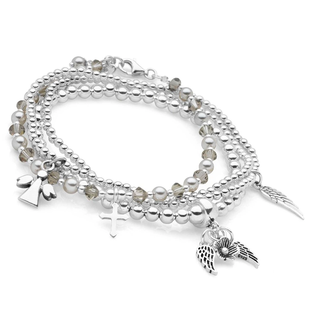 Stack your way to fabulous style with this stunning stack of four bracelets. Our much-loved feather talisman sits beautifully next to shining beaded bracelets adorned with sterling silver charms to symbolise positivity, acceptance and love. Enhance your jewellery collection with the different shapes and textures with this set.