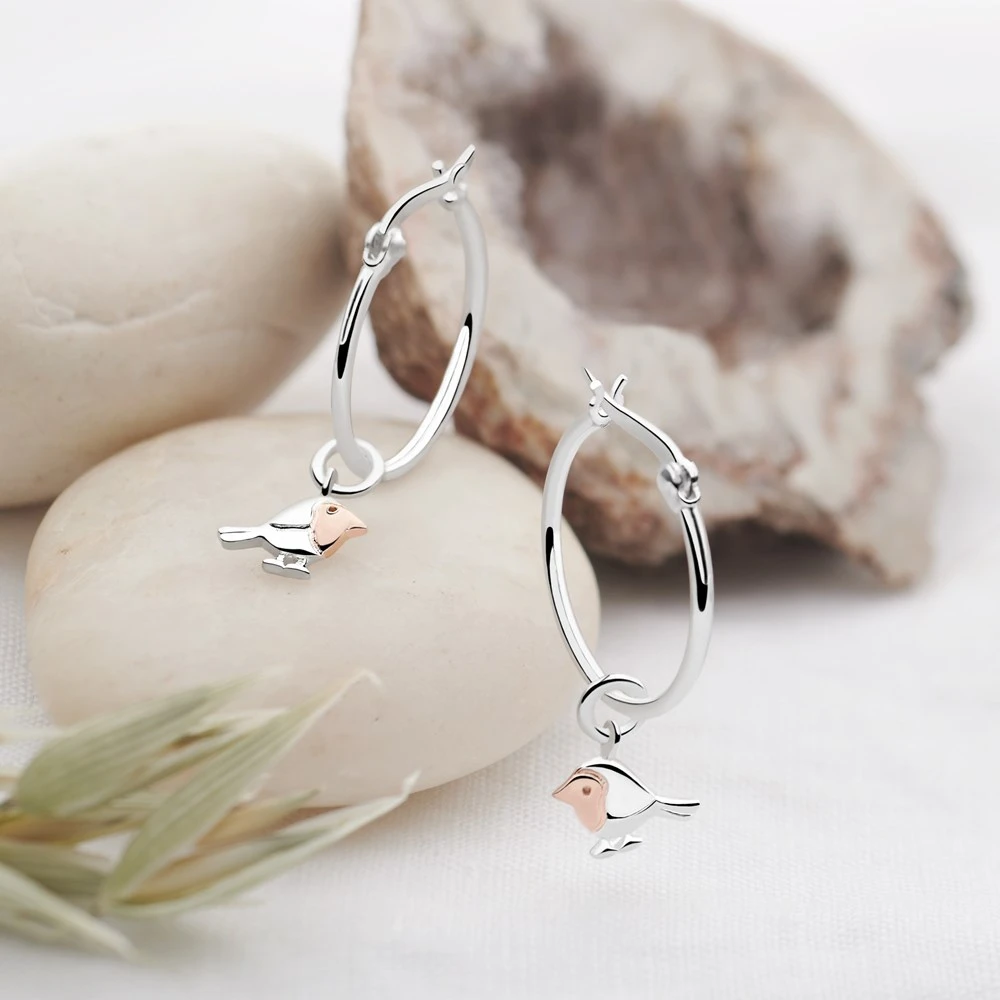 Winter Robin Charm Hoops